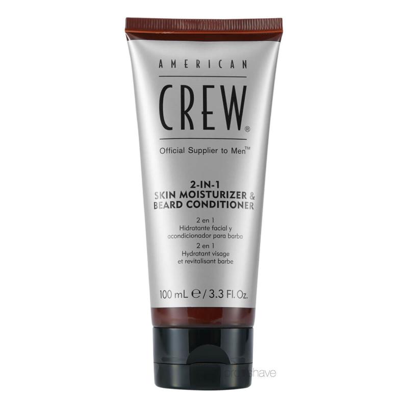 American Crew 2 In 1 Skin Moisturizer Beard Conditioner 100 Ml er et fremragende valg til mænd. Der ønsker, at pleje både deres skæg og hud i ét enkelt trin. Dette produkt er ideelt til kortere skæg eller også skægstubbe og giver en effektiv fugtighedsbehandling uden, at tilstoppe porerne.